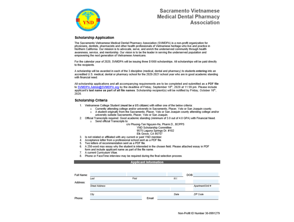 - Must be an incoming Vietnamese student in any of these 3 disciplines (medical, dental, and pharmacy).